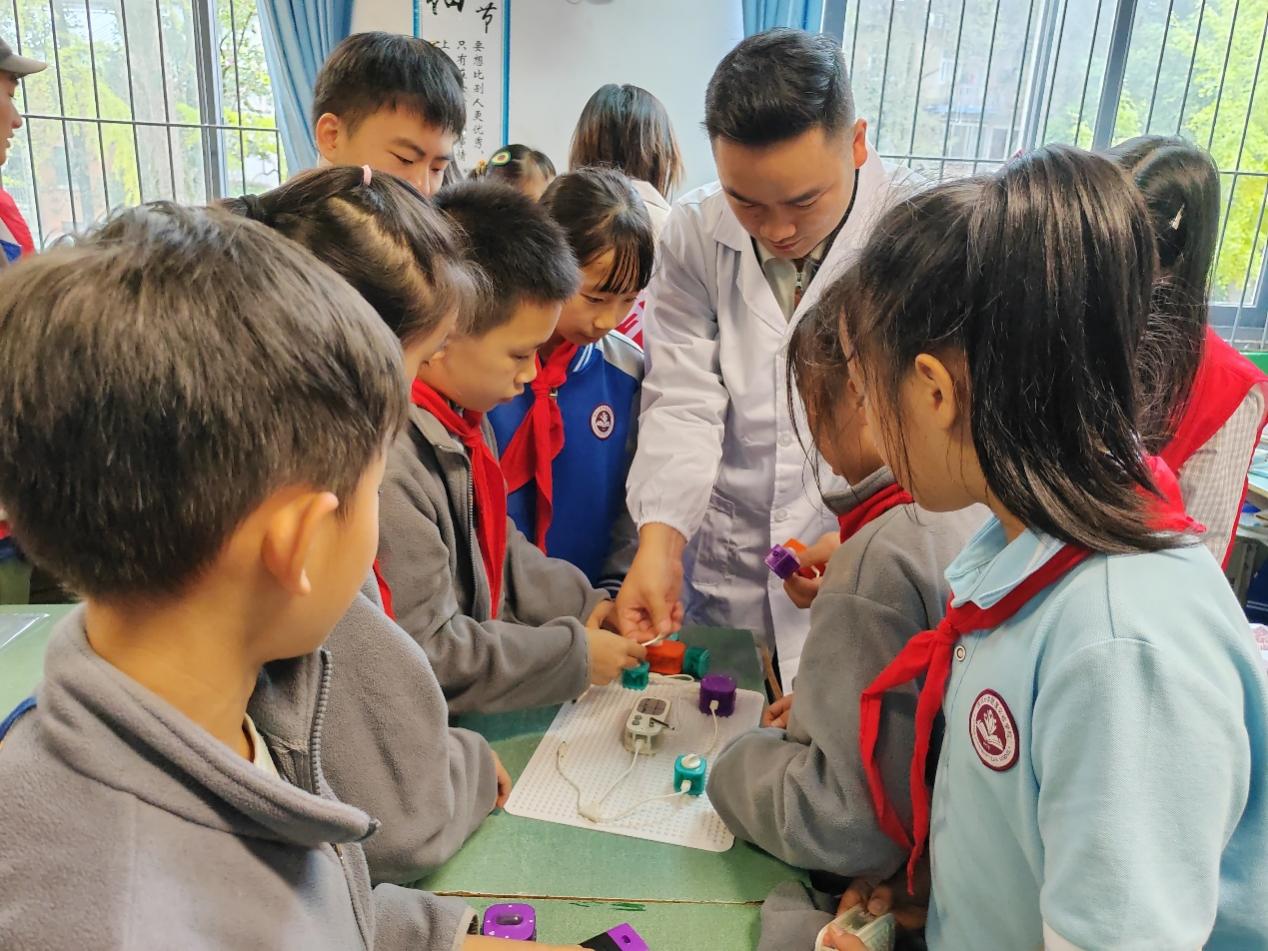 为激发小学生对物理的探索热情,搭建高校与基础教育的科普桥梁,11月7日,西华大学理学院范志祥老师带领物理科普团队、理学院青年志愿者服务队志愿者及 西华大学“理学社” 社员,走进西华大学附属小学,为四年级一班和二班的同学们带来了主题为 “科学罐头电子积木小实验乐园” 的物理科普公益宣传活动。