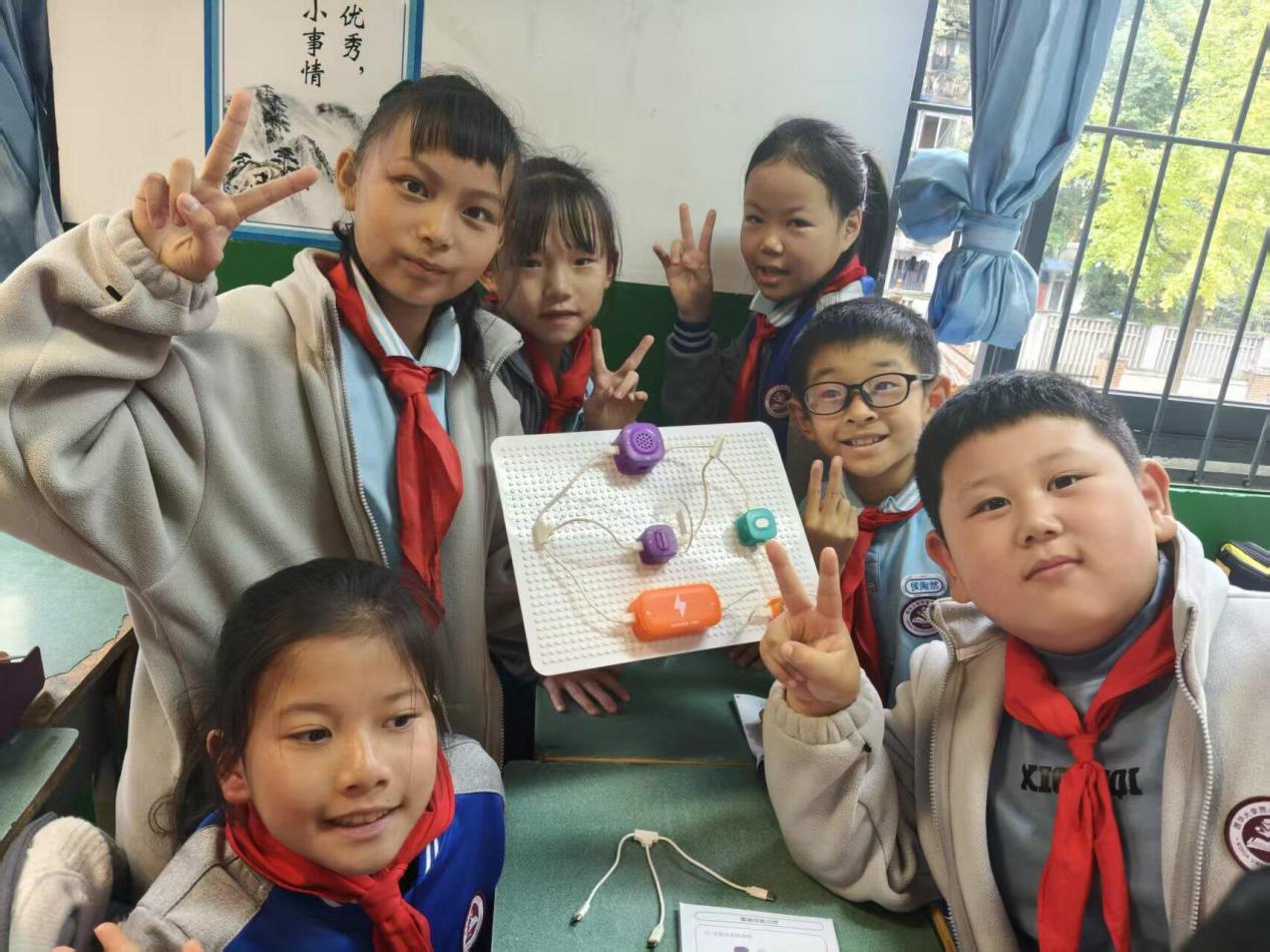 动手实践环节成为活动的核心亮点。在志愿者和社员们的分组指导下,同学们运用科学罐头实验套装,亲自动手进行电路搭建与创意实验。从认识电源、导线、开关等基础元件,到尝试组装简单电路,大家在合作探究中感受电流的神奇作用,直观理解电路工作原理。分组创意搭建环节中,各小组充分发挥想象力,用电子积木完成特色搭建任务,在协作中锻炼动手能力与逻辑思维,加深了同学们对物理学科的喜爱。