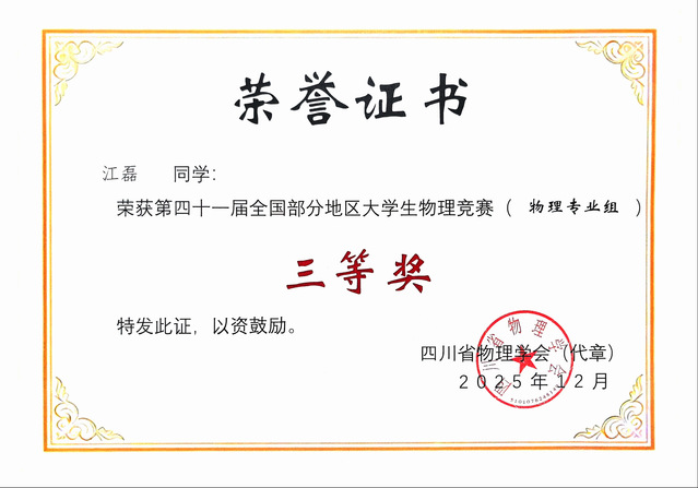 全国部分地区大学生物理竞赛是提升学生物理学习热情、培养创新能力的重要平台。此次西华大学首次参赛并获奖,不仅为学校积累了赛事经验,更激励了更多学生投身物理学科学习与实践。未来,学校将继续依托学科竞赛平台,深化物理学科教学改革,进一步提升学生的学科素养与创新实践能力,为培养适应科技发展需求的高素质人才奠定坚实基础。