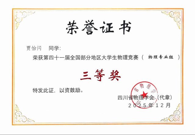 作为首次组队参赛的高校,西华大学在理学院物理系范志祥老师的统筹组织下,共组织了 31 名理工科学生参与该赛事。经过激烈比拼,西华学子凭借扎实的物理学科基础与良好的创新思维能力斩获佳绩:2 人获二等奖,2 人获三等奖,4 名获奖学生均来自应用物理学专业,首次参赛便实现赛事奖项 “零的突破”,展现出应用物理学国家级一流专业建设点专业教学的扎实功底与人才培养成效。