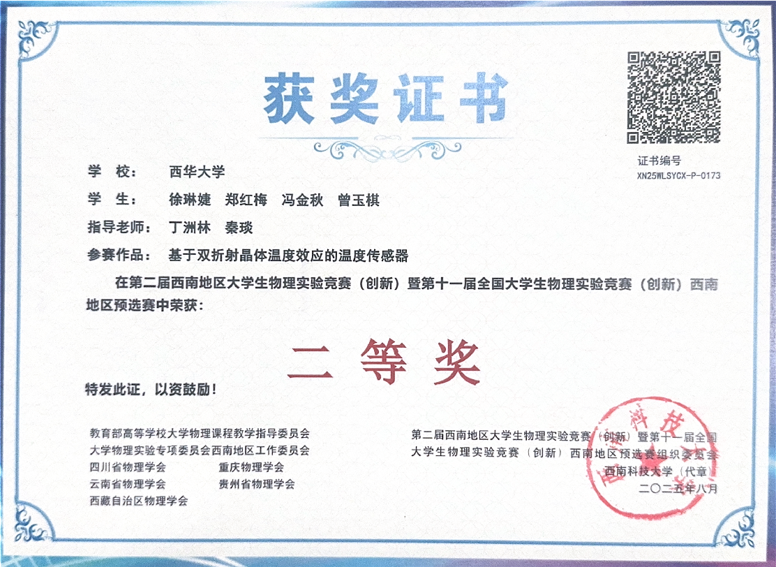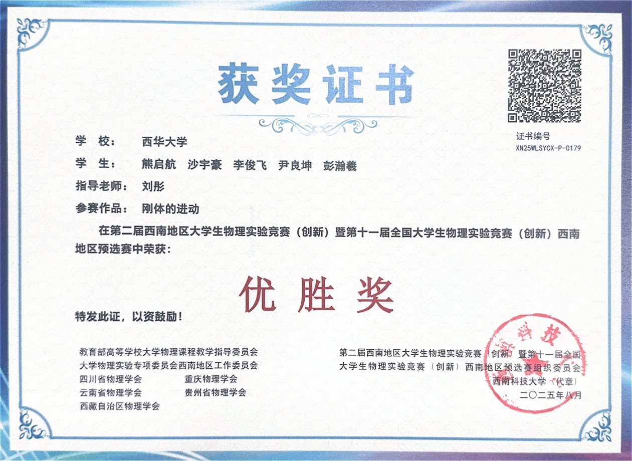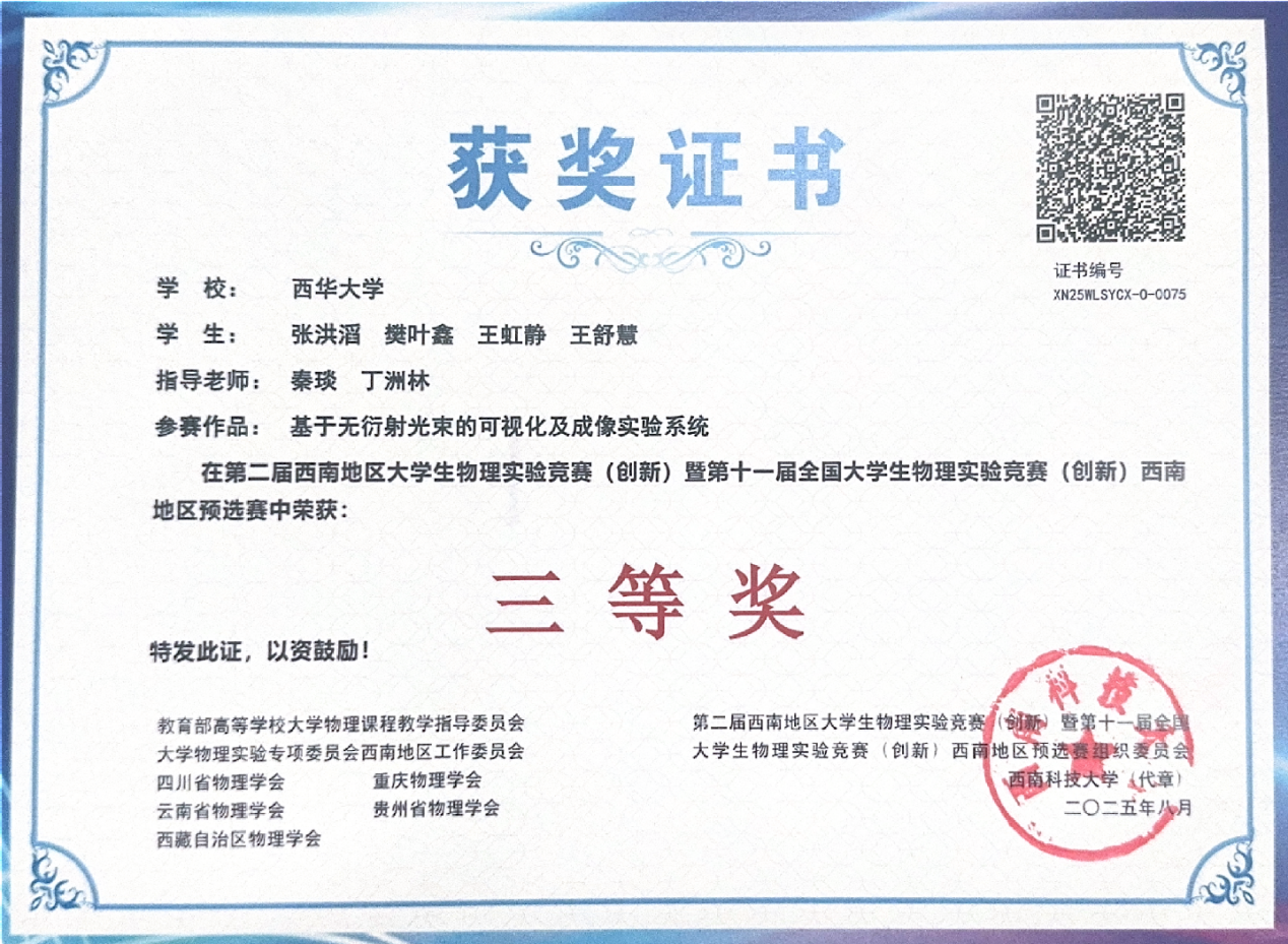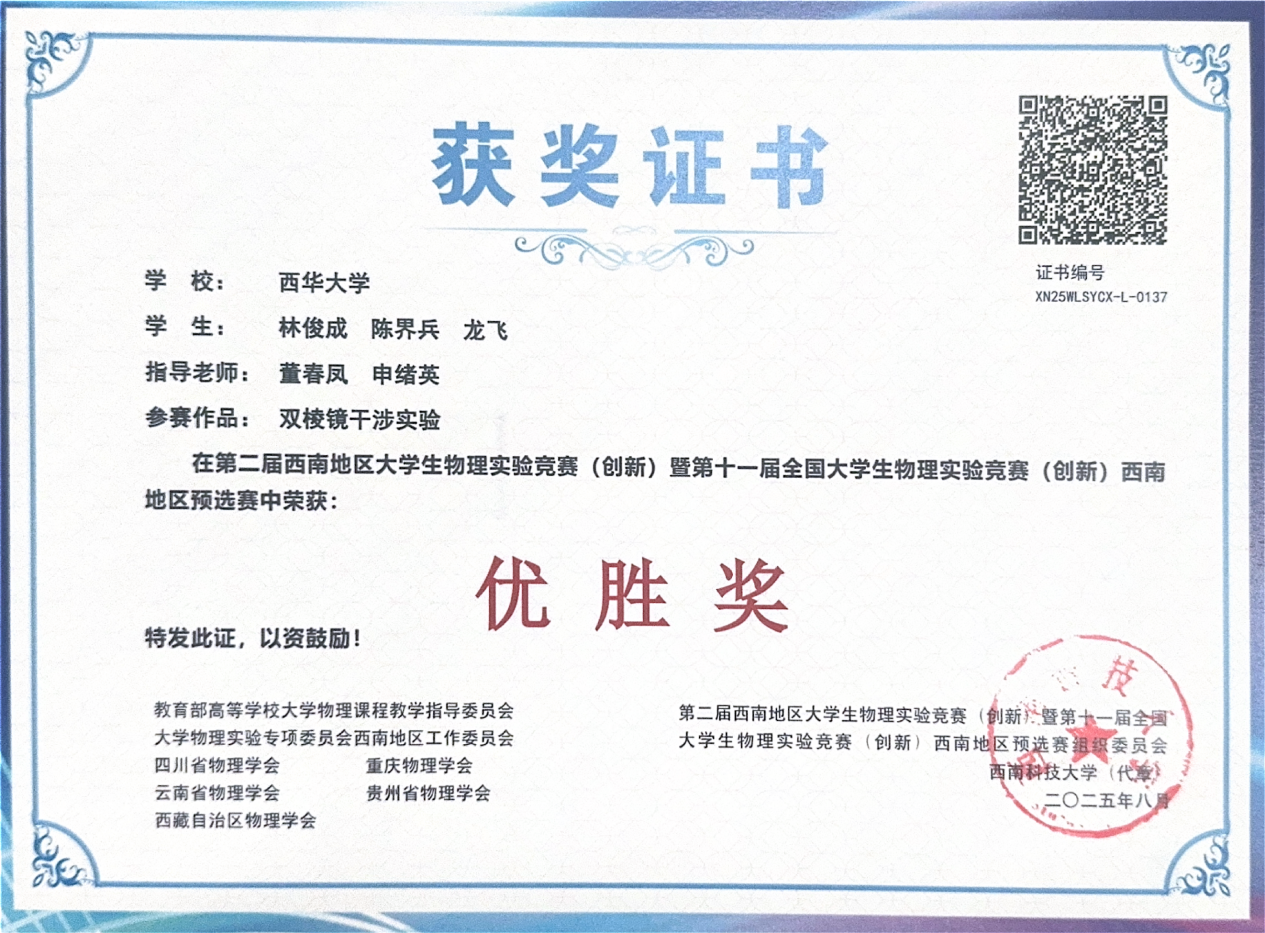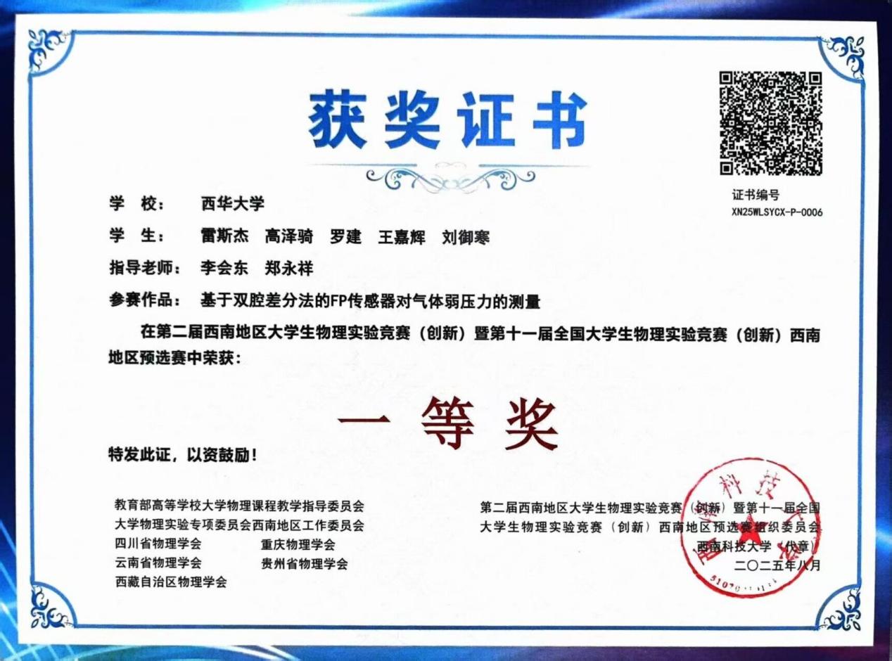据悉,本次竞赛由教育部高等学校大学物理课程教学指导委员会大学物理实验专项委员会西南地区工作委员会、四川省物理学会、重庆市物理学会、云南省物理学会、贵州省物理学会、西藏自治区物理学会联合主办,西南科技大学承办,西华大学协办。此次获奖不仅是对我校物理实验教学成果的肯定,更是对学子创新能力与实践能力的激励。未来,西华大学将继续以各类高水平学科竞赛为抓手,深化实验教学改革,为培养更多具备创新精神与实践能力的高素质人才奠定坚实基础。