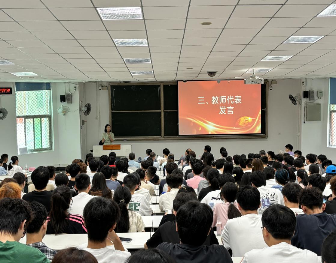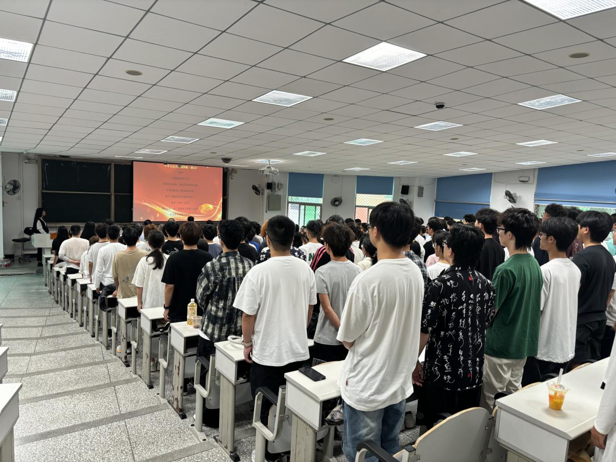 典礼开始前,2025级新生早早来到会场有序入座,共同观看了学院宣传片。视频生动展现了理学院雄厚的师资力量、先进的实验平台和丰富的学术活动,现场气氛庄重而热烈。随后,开学典礼在庄严的中华人民共和国国歌声中正式拉开帷幕。