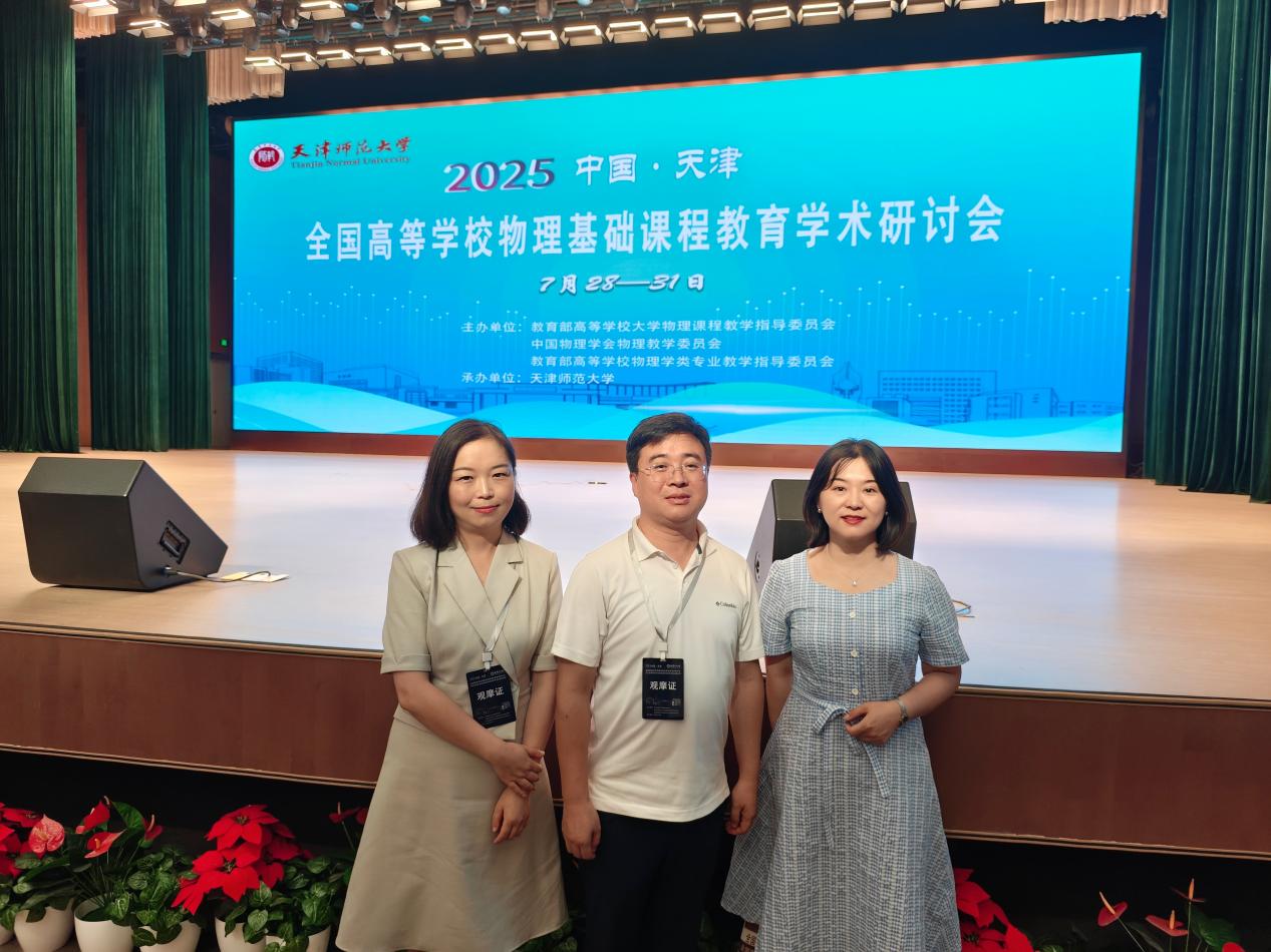 2025年7月28日—7月31日,由教育部高等学校大学物理课程教学指导委员会、教育部高等学校物理学类专业教学指导委员会、中国物理学会物理教学委员会主办的2025年全国高等学校物理基础课程教育学术研讨会在天津师范大学召开。本次会议以“数承物理,智启未来”为主题,吸引了全国26个省市自治区、186所高校、13家企业的380余名专家学者参会。我校理学院李会东副院长带领大学物理教学团队参会。