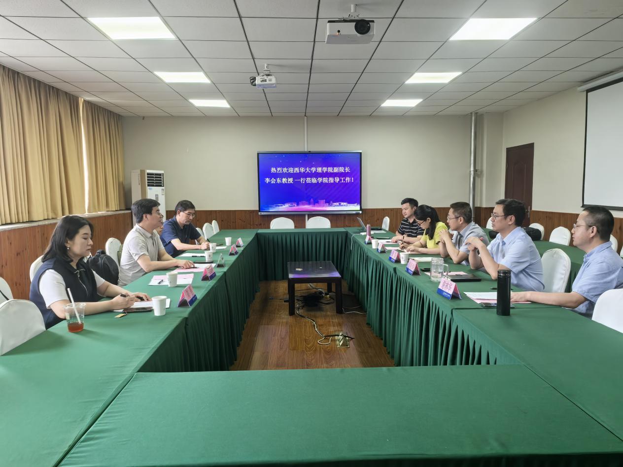为加强兄弟院校间的交流与合作,学习先进经验,推动自身发展,2025 年 7 月 2 日,我校理学院一行赴四川师范大学物理与电子工程学院开展调研交流活动。理学院教学副院长李会东、物理系主任付佳、物理系副主任范志祥、物理实验中心副主任胡夏融、物理系刘彤博士参与了此次调研,四川师范大学物理与电子工程学院党委书记廖磊、党委副书记钟亚秋、副院长闫从华、实验中心主任谢林华、物理演示实验室和大学生物理实验竞赛负责人刘科热情接待并参会交流。