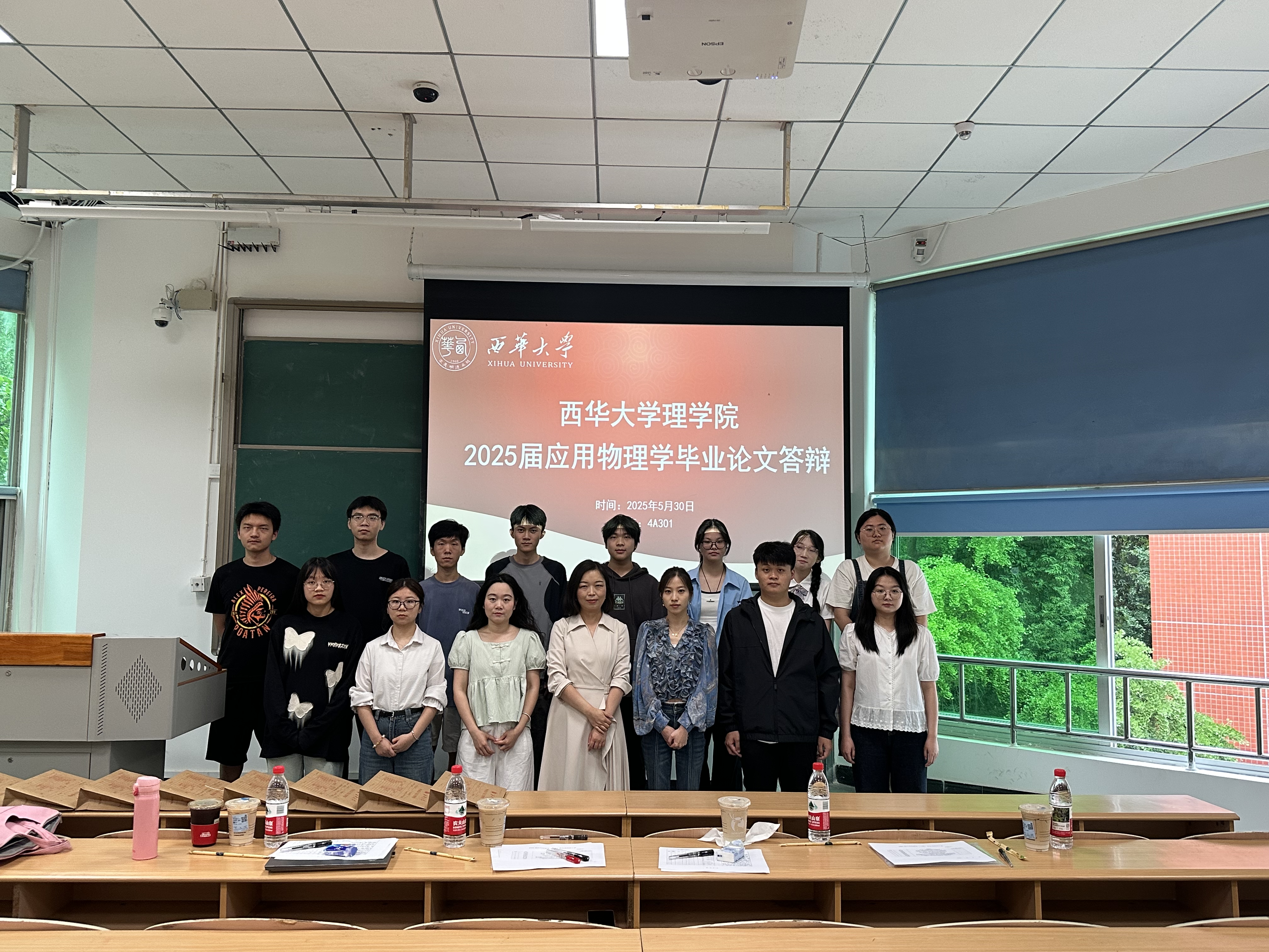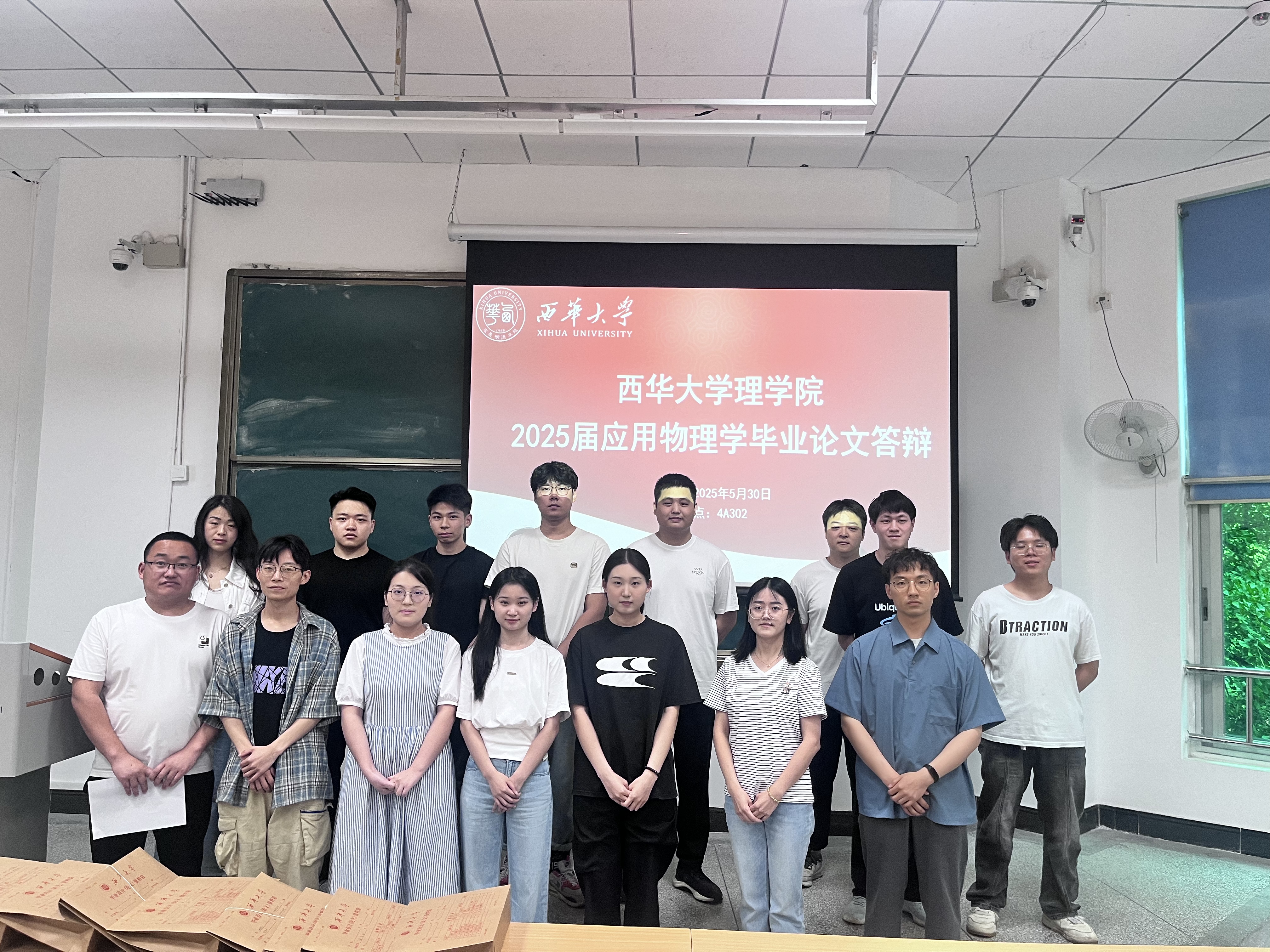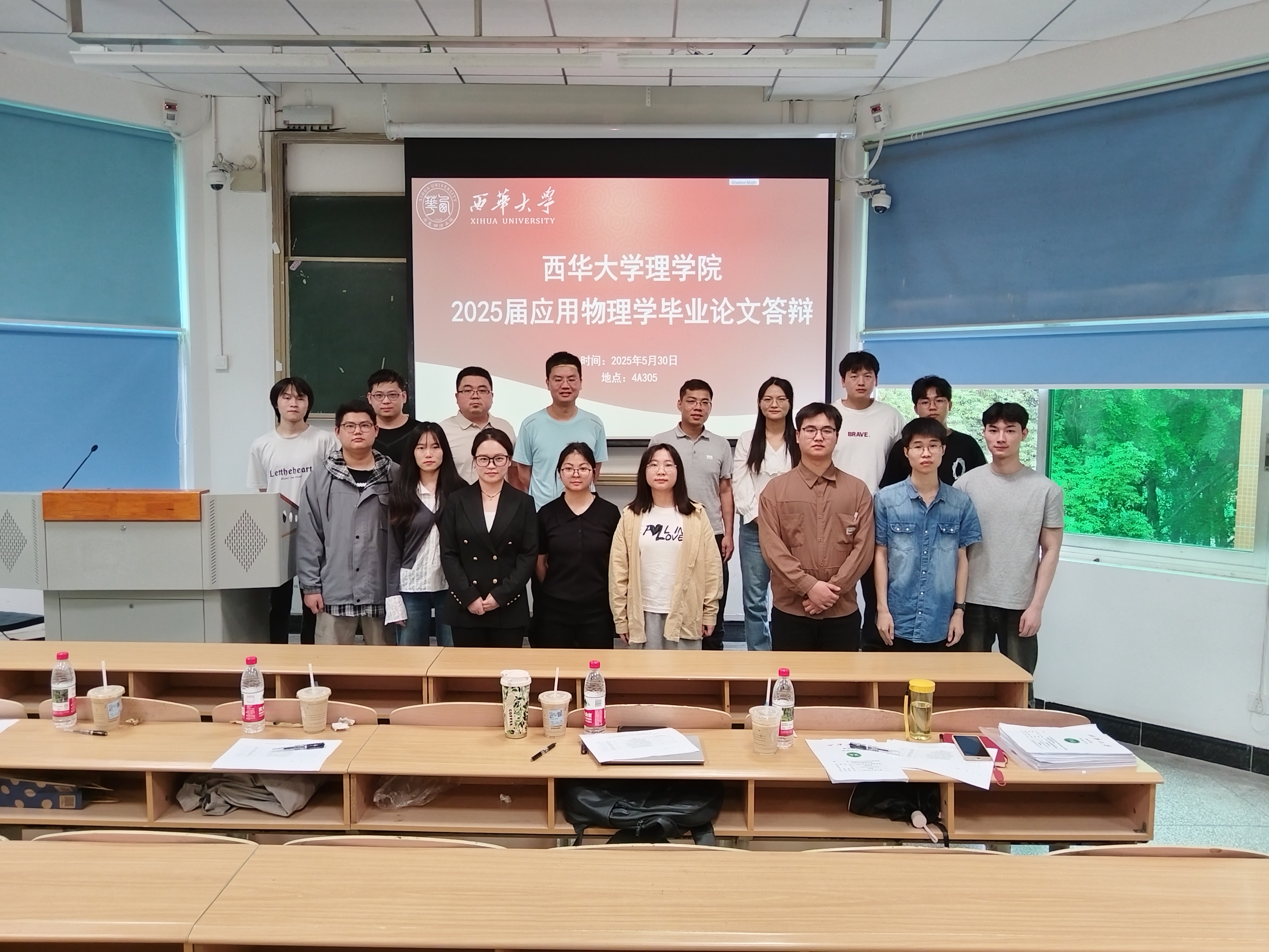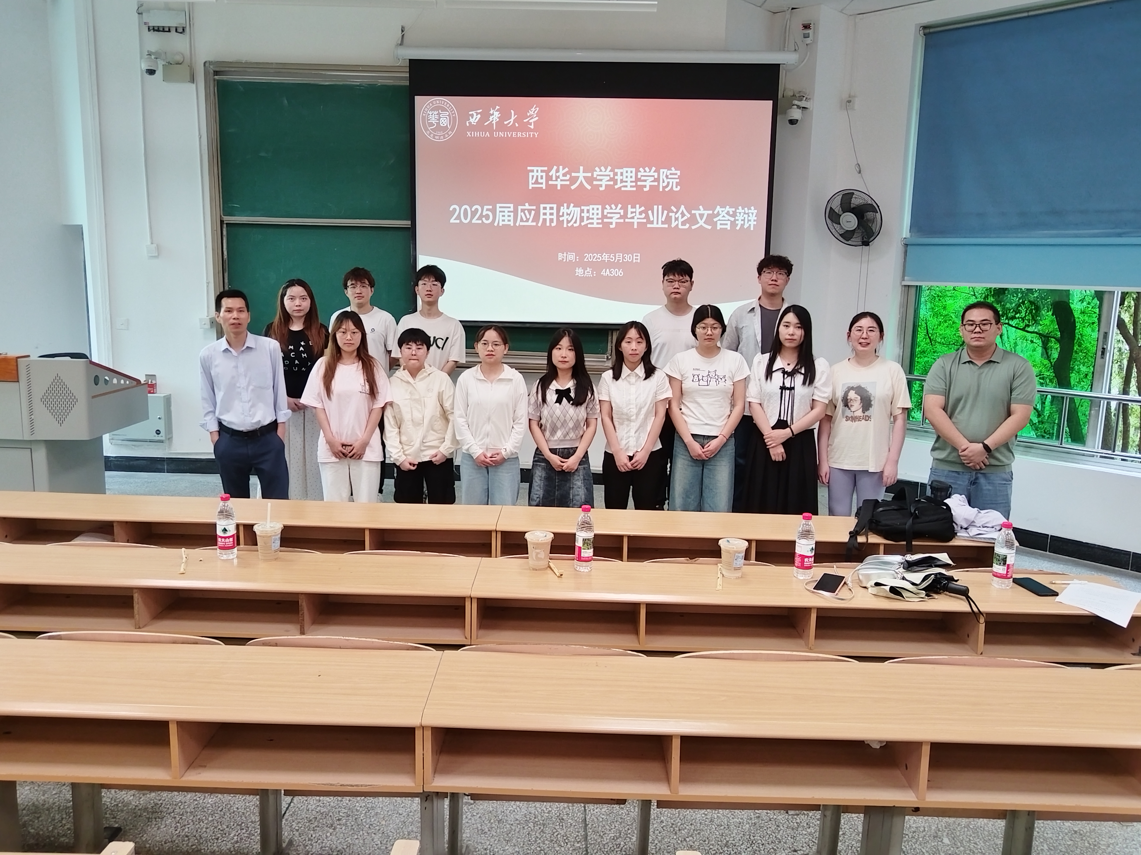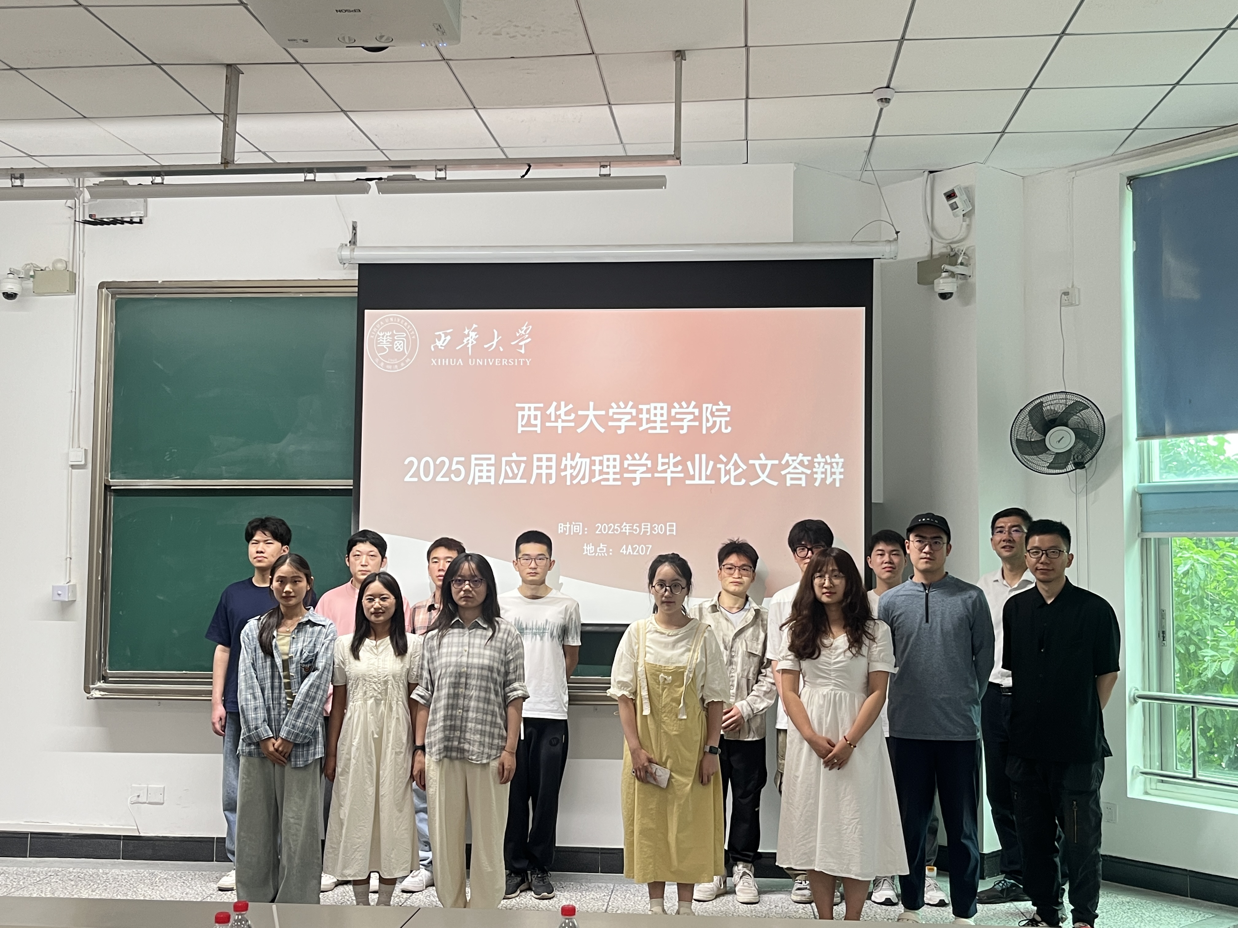 2025 年 5 月 30 日下午 14:00-18:00,理学院物理系在第四教学楼 A 座的 4A203、4A207、4A301、4A302、4A303、4A305、4A306 教室举行了 2025 届应用物理学专业 78 位毕业生的学士学位论文答辩,物理学科的老师参加了此次答辩。